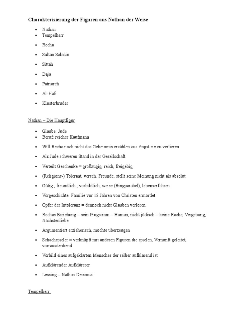 Charakterisierung Der Figuren Aus Nathan Der Weise