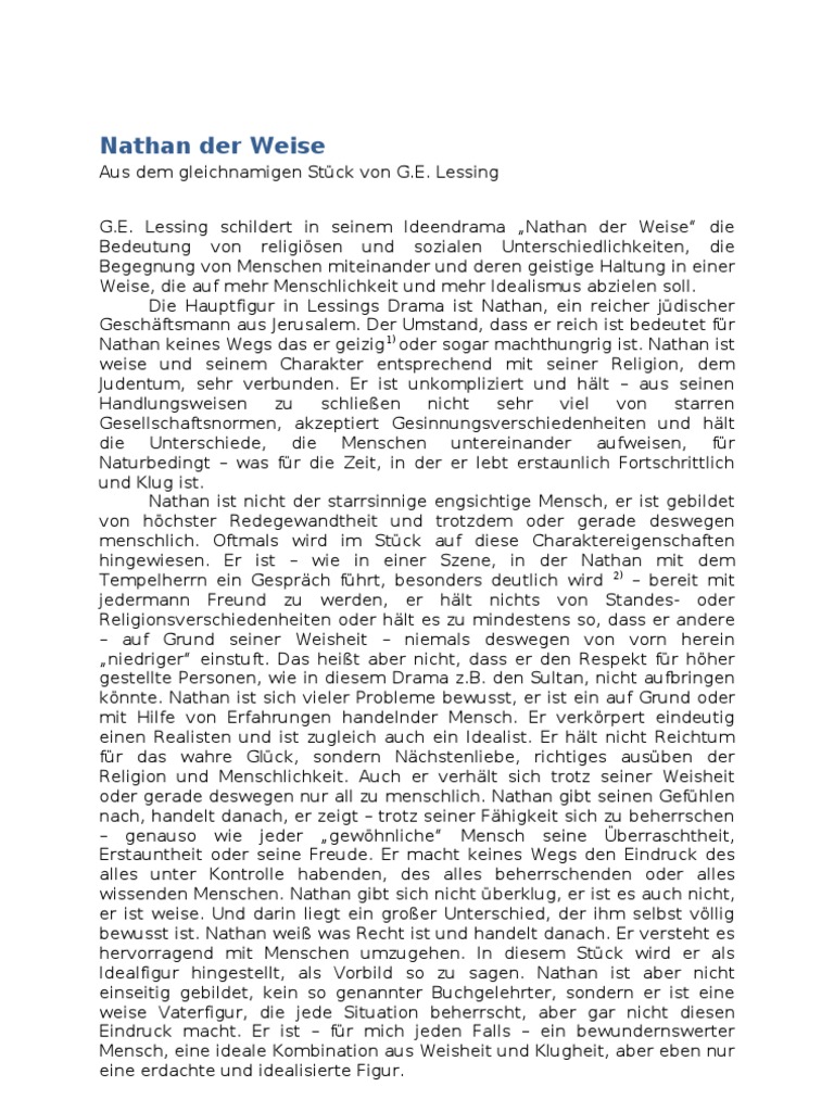 Charakterisierung Nathans als der Hauptfigur in "Nathan der Weise" Lessing, Nathan, kritische Charakteristik. Lessing, "Nathan der Weise" - literarische Charakteristik der Titelfigur. Es gibt viele Möglichkeiten, einen literarischen Text zu analysieren.