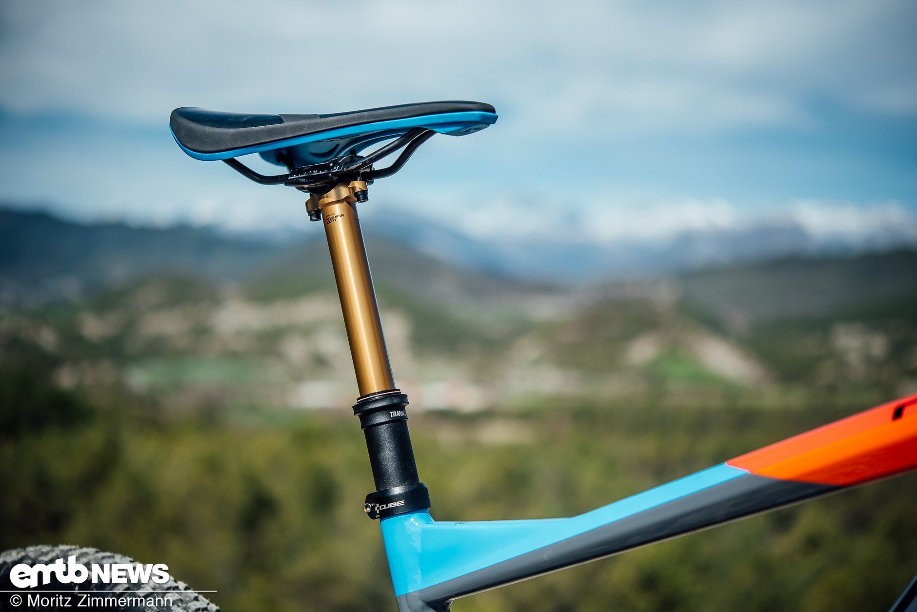 The Stereo Hybrid 140 HPC ABS 750 comes with the Fox Float DPS EVOL with 140mm of trail-taming travel at the rear and a Fox 34 Rhythm 150mm fork. The Cube-branded dropper post is on an internal cable and this lever-controlled dropper saw plenty of action as the bike fueled my confidence on the descents and quick single-track trails.