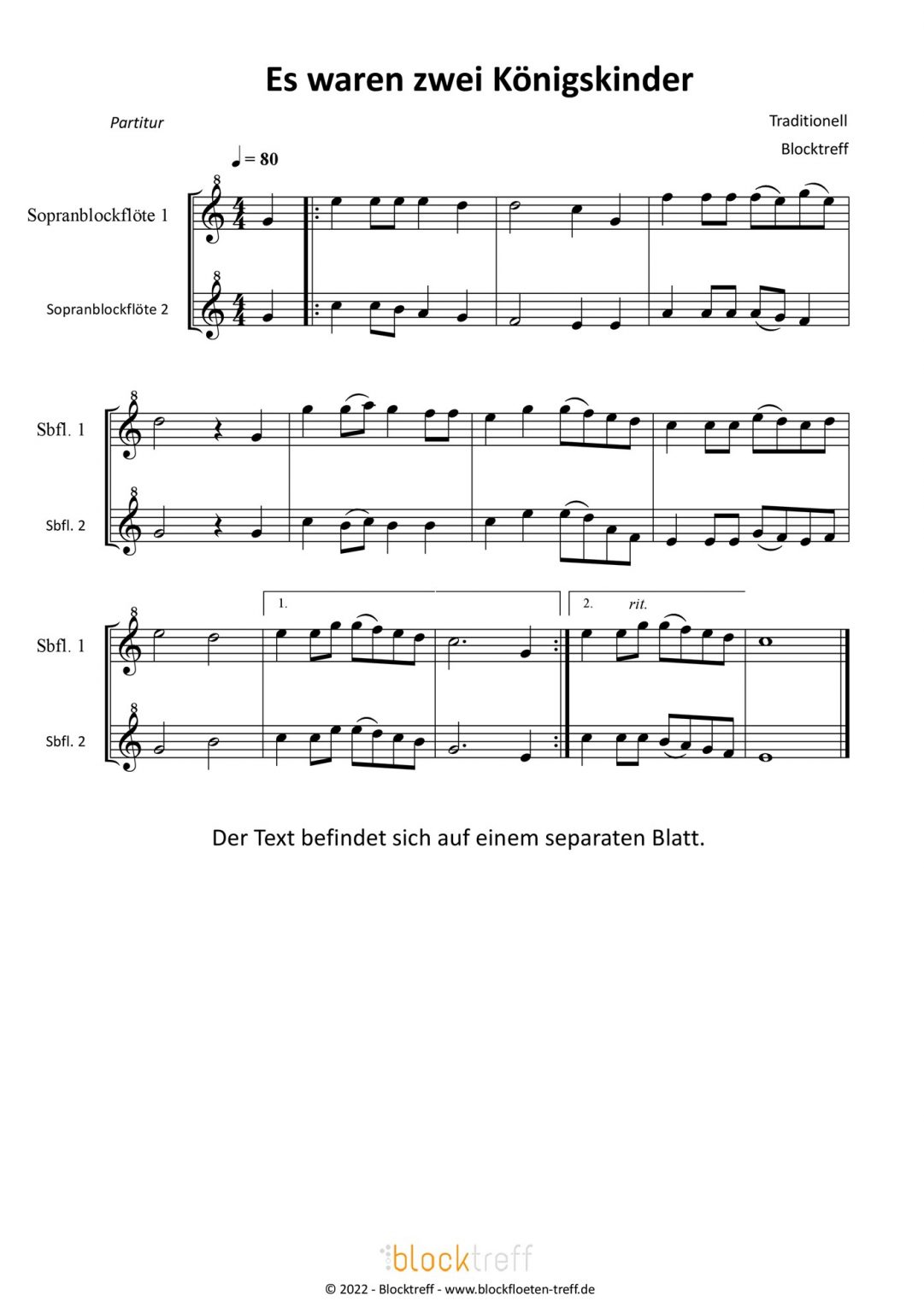 Es waren zwei Königskinder Text und Noten BlockflötenTreff