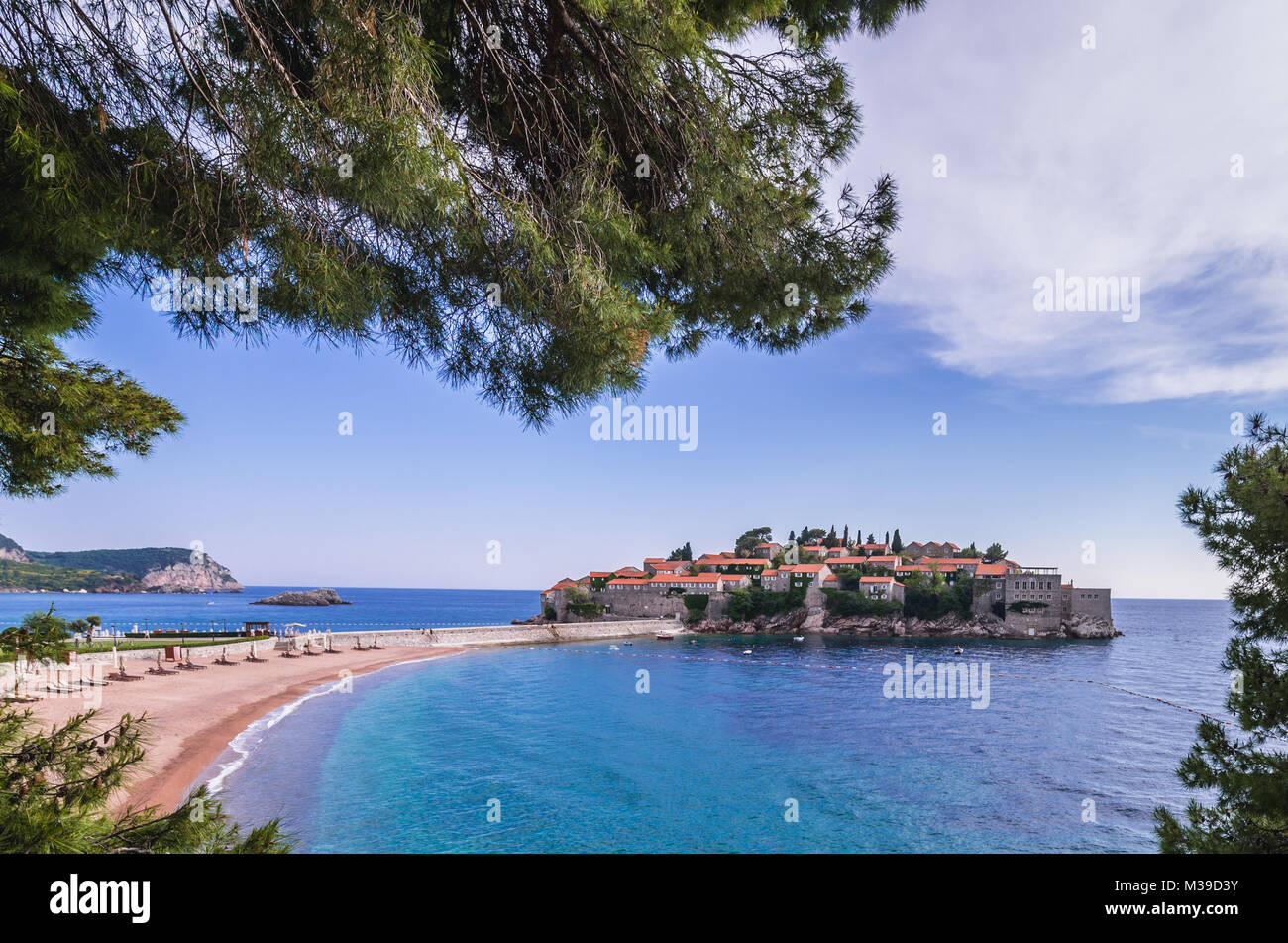 Small island of Sveti Stefan and five star Aman Sveti Stefan hotel resort on the Adriatic coast