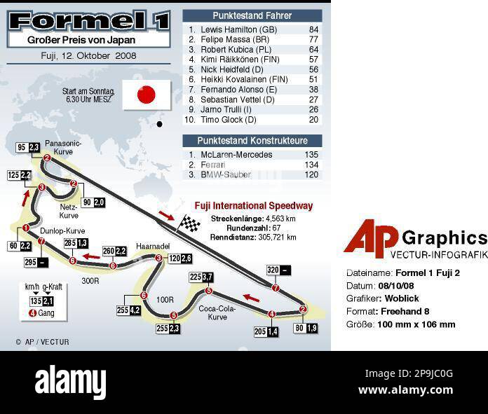 GRA112 GRAFIK FORMEL 1 FUJI 2 Detailzeichnung und Beschreibung der Rennstrecke in Japan sowie