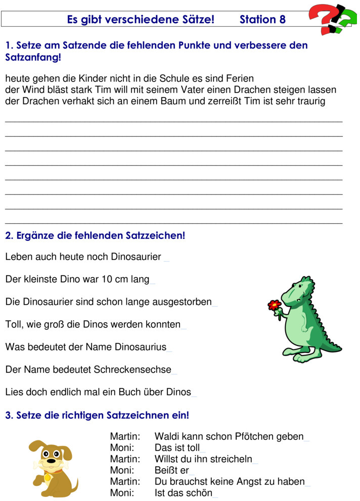 Übungsblatt zu Satzarten und Satzzeichen