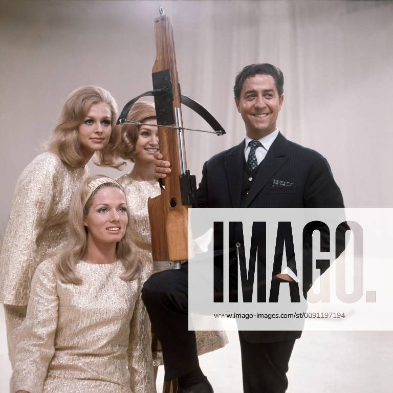 DER GOLDENE SCHUSS VICO TORRIANI mit Armbrust und Assistentinnen, 1969, *** THE GOLDEN SHOT VICO TOR