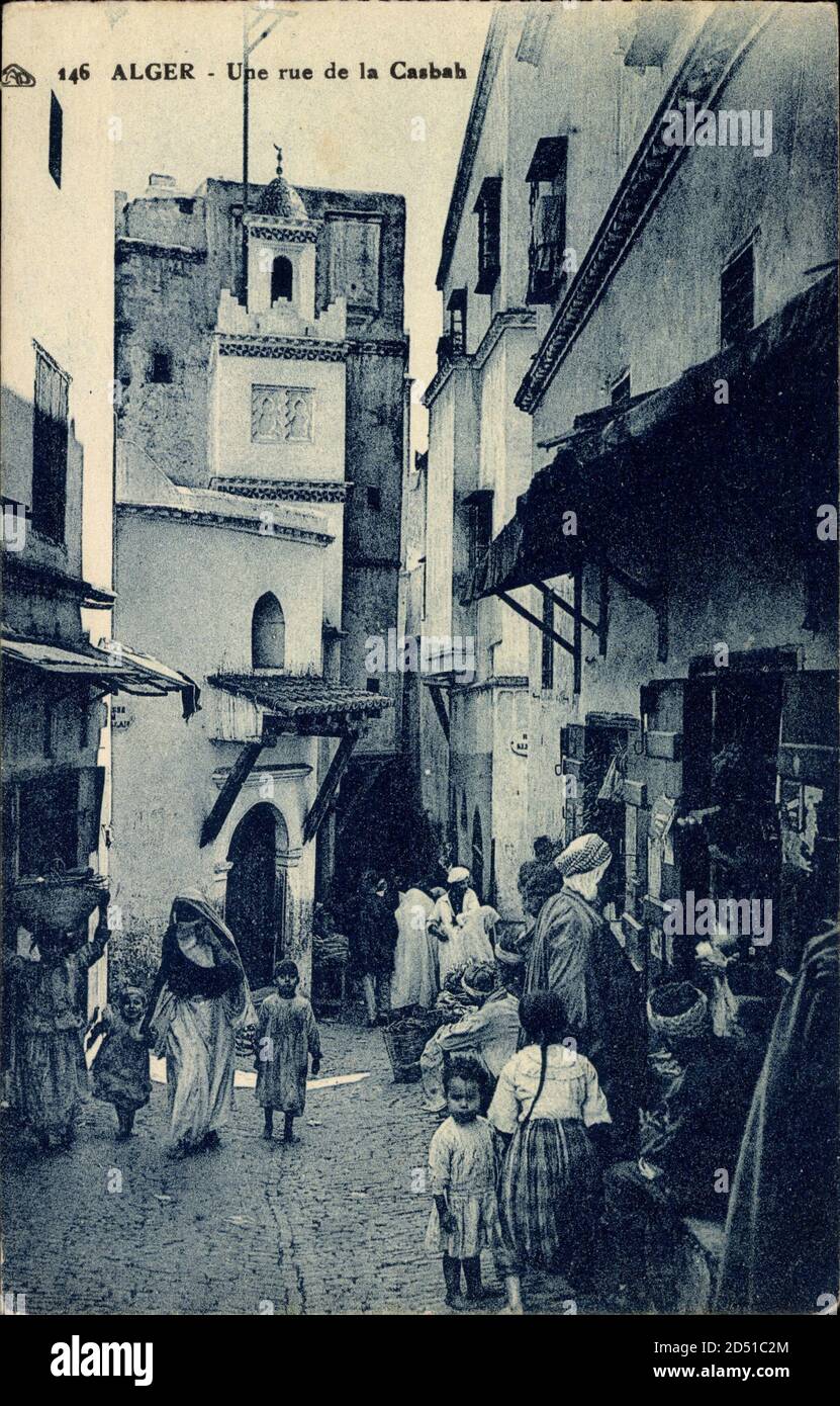 Alger Algerien, Une rue de la Casbah, Einwohner, Frau mit Korb usage worldwide Stock Photo Alamy